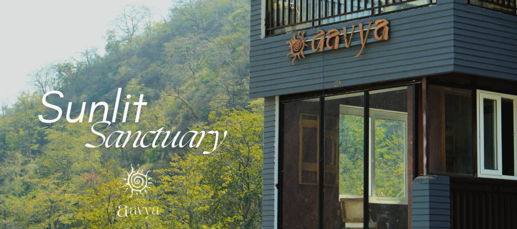 Aavya sits in Upper Tapovan, the Most Interesting Part of Rishikesh, the quieter, sunlit hillside of Rishikesh where the town rises into forest.